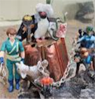 Illustration of court: Penguin with white hair is Judge; 1 Guard in green and another on a monkey’s back. I’m the howling dog on the bench. The little person in red is my lawyer bolting.